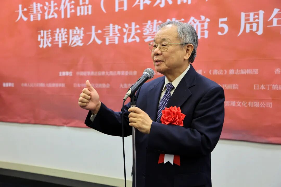 中国硬笔书法协会主席、香港大书法协会永远主席、大连市文史研究馆馆员、大连民进开明画院荣誉院长张华庆教授致答谢辞。