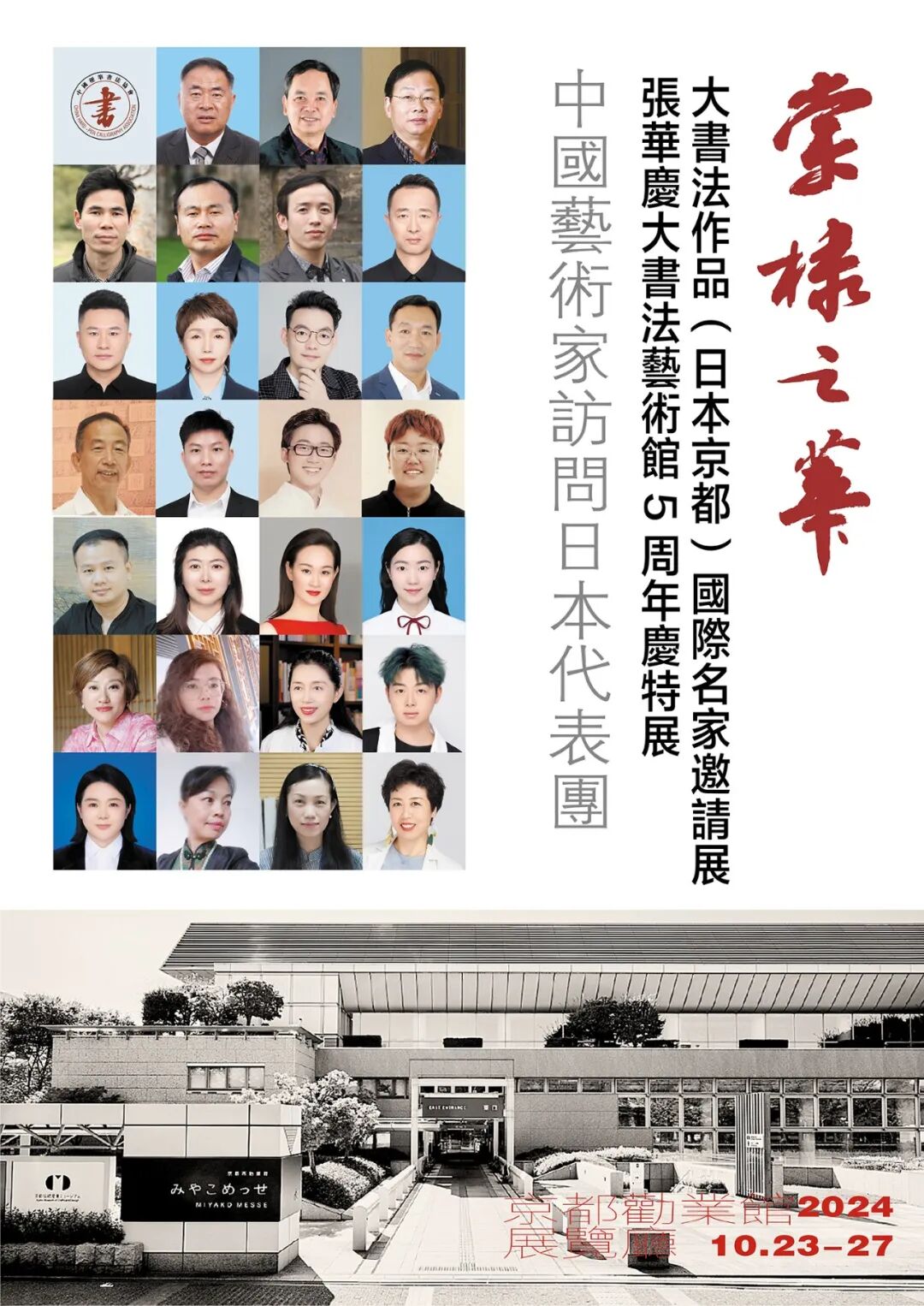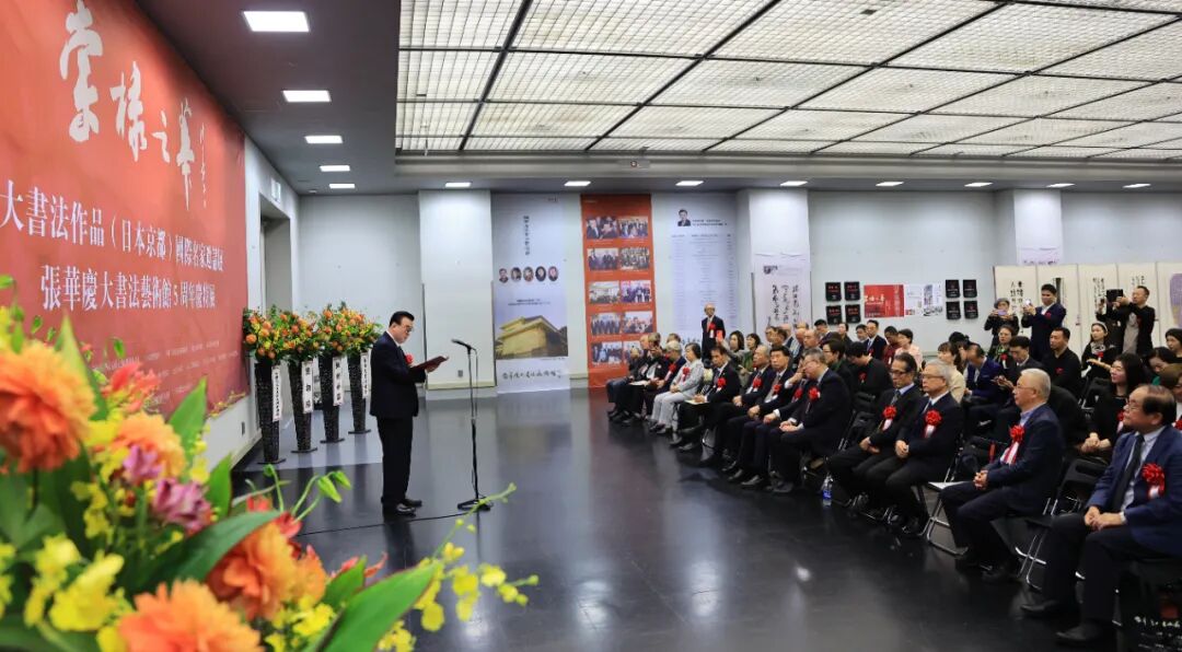 10月23日,“棠棣之华”大书法作品(日本京都)国际名家邀请展、张华庆大书法艺术馆5周年庆特展在日本京都劝业馆展览厅隆重开幕。来自中国内地、港澳台及日本、韩国等地书法家参加了活动。